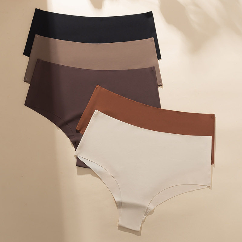 欧美无痕冰丝一片式女士内裤中腰裸感舒适透气纯色三角裤女