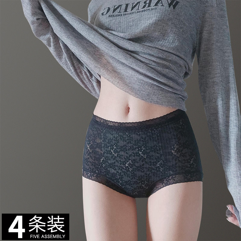 4条中腰内裤女蕾丝 性感超薄网纱透明包臀无痕三角裤纯棉裆大码