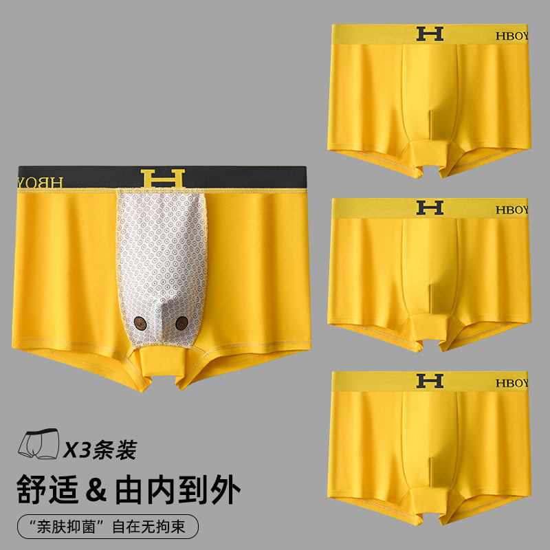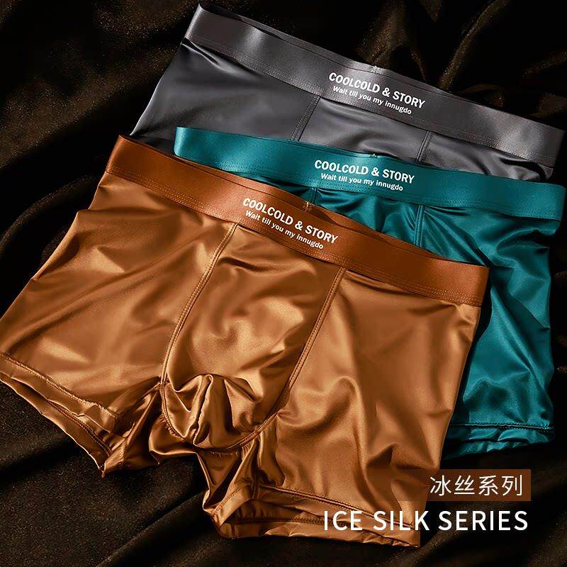 DGVV轻奢缎面男士冰丝内裤桑蚕丝10A级抑菌内裆裸感男生四角内裤