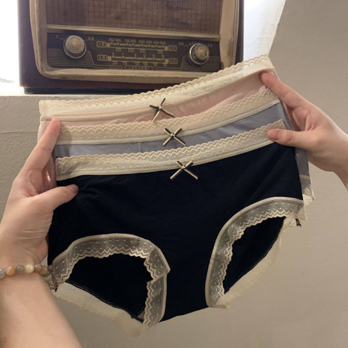 日系莫代尔性感蕾丝边内裤女中腰透气纯欲风棉裆无痕薄款三角裤