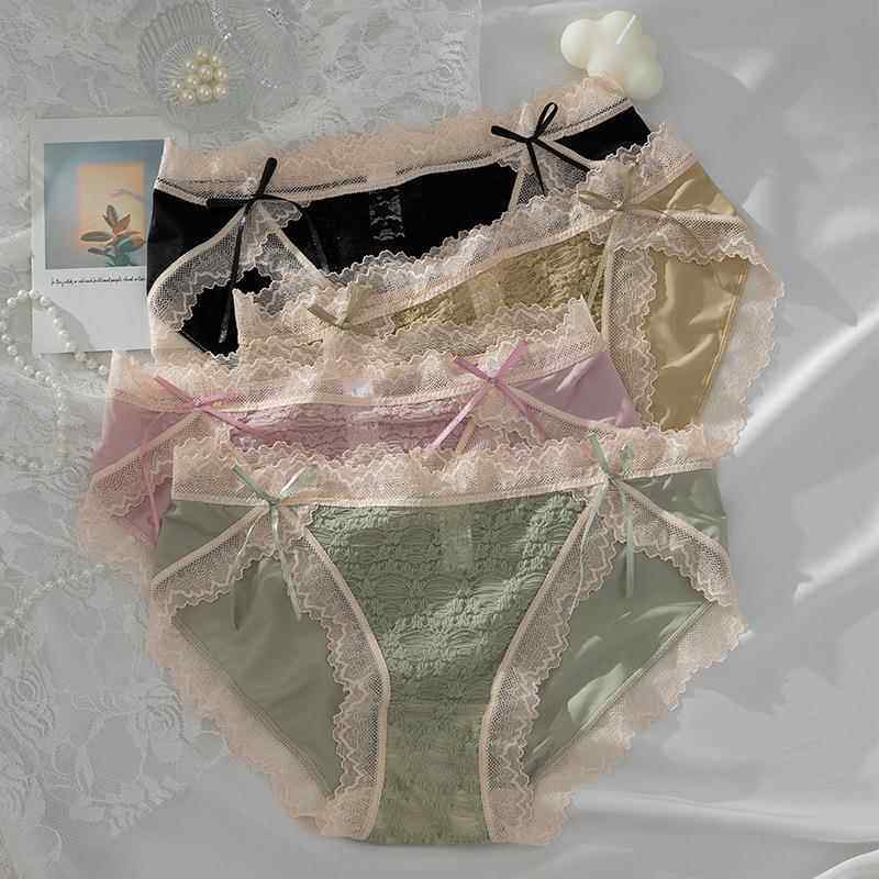性感内裤女蝴蝶结绑带蕾丝纯欲低腰三角裤女士冰丝纯棉裆网纱薄款