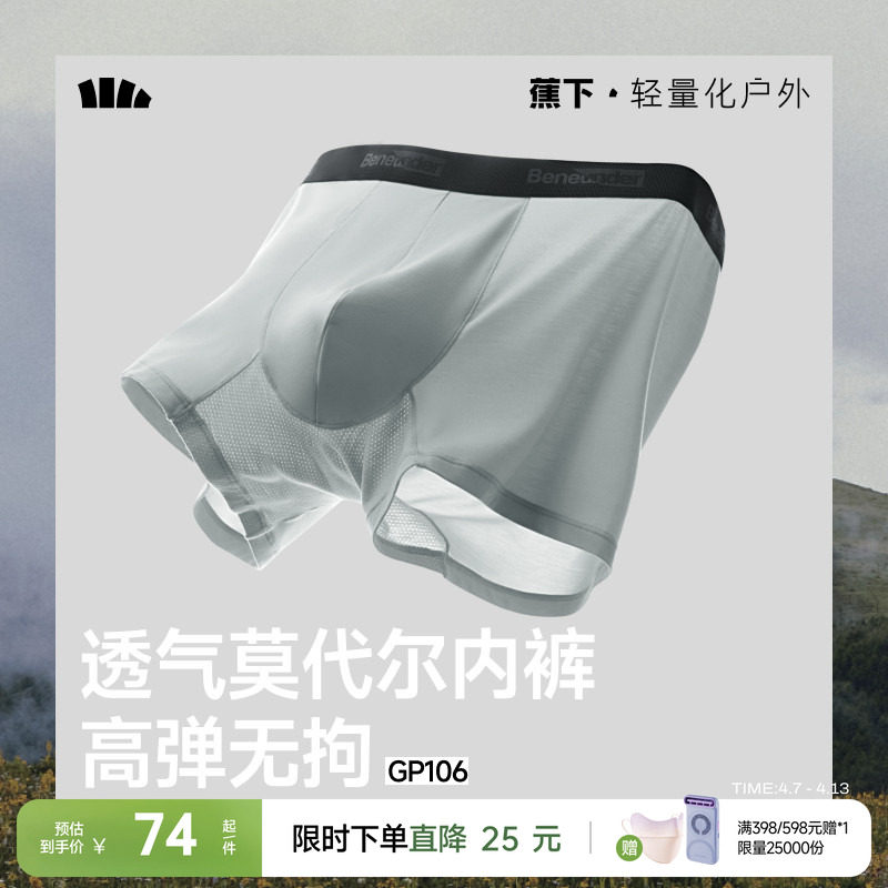 蕉下男士肤感莫代尔内裤透气平角短裤头抗菌不卡裆防夹臀四角内裤