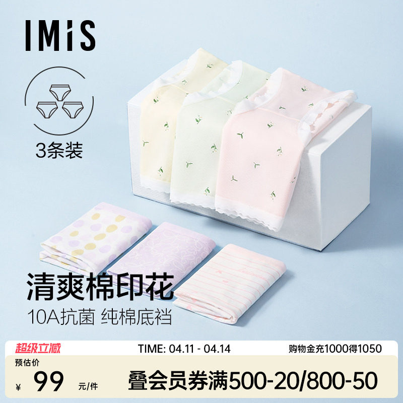 爱美丽3条装花卉印花中腰内裤女纯棉底裆10A抗菌无痕三角短裤新款