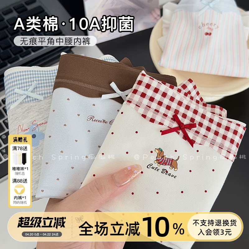 冰丝10A内裤女无痕面膜纯棉裆中腰少女学生包臀舒适透气三角裤头