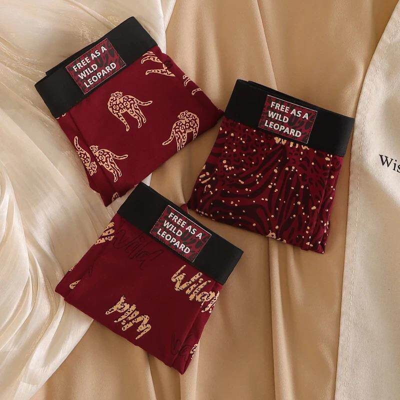 狄兰卡男士大红色内裤p本命年纯棉裆新娘结婚礼物虎年平角裤3条装
