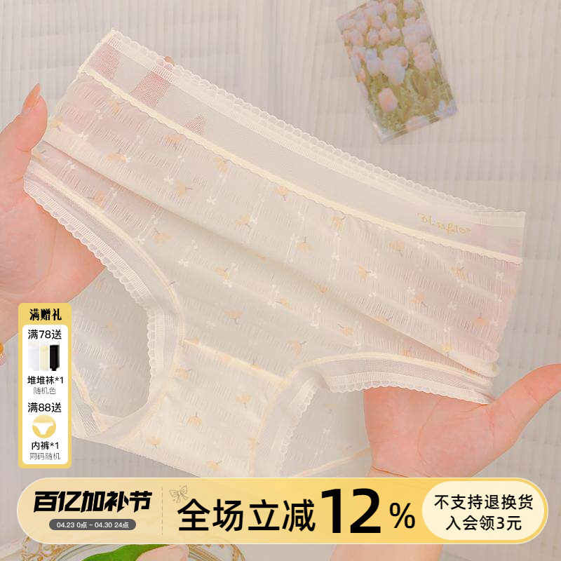 蕾丝纯欲风性感内裤女2026新款冰丝网纱中高腰纯棉裆女士三角裤头