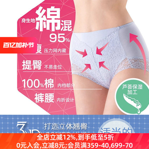 美宅内裤女高腰提臀收腹裤无缝桑蚕丝裆部塑形无痕大码女士三角裤
