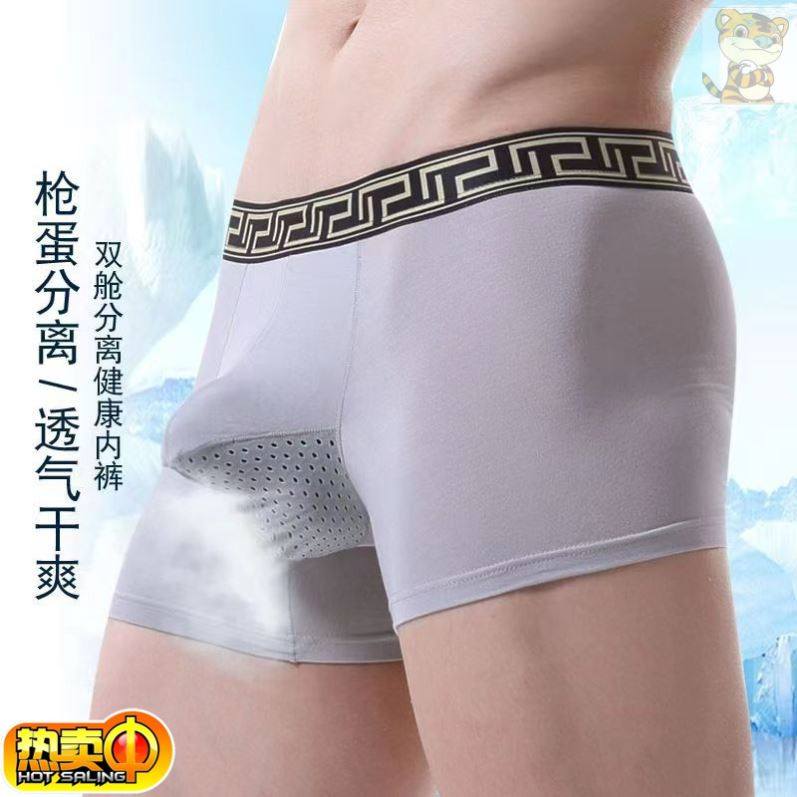 男士枪弹式分离内裤男莫代尔阴囊托平角冰丝薄款透气宽松四角大码