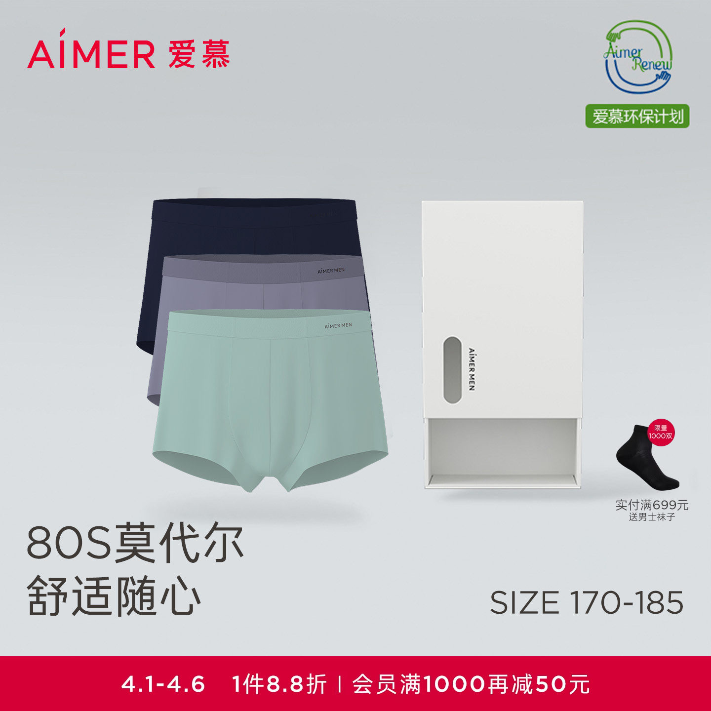【3件包】爱慕先生内裤男80S莫代尔抗菌净痕腿围加大码装腰平角裤