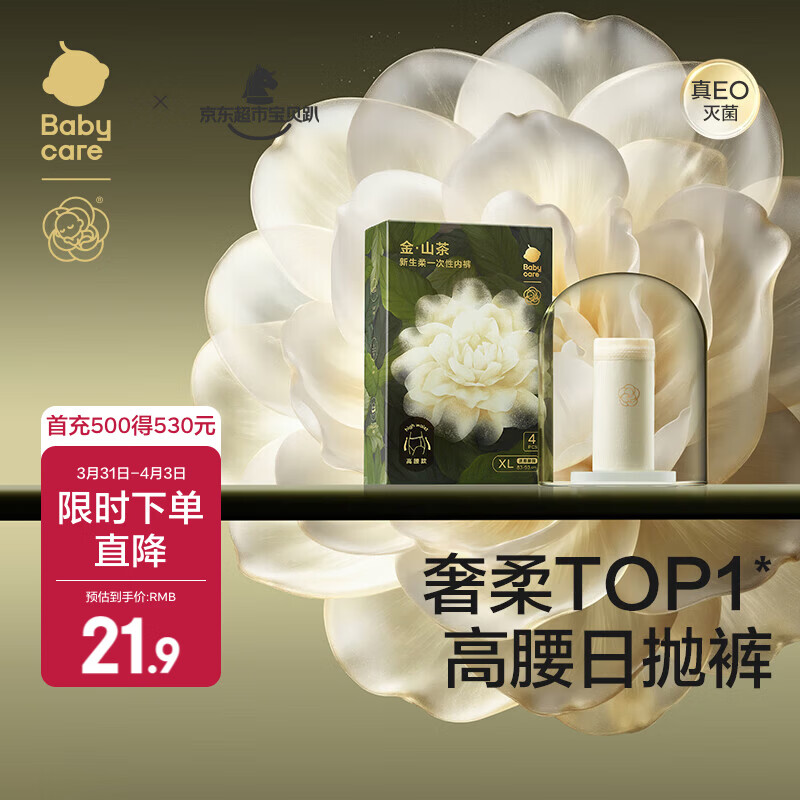 babycare【安心灭菌】山茶花一次性内裤女高腰孕产妇待产免洗日抛出差旅行 山茶柔一次性高腰内裤4条 XXL