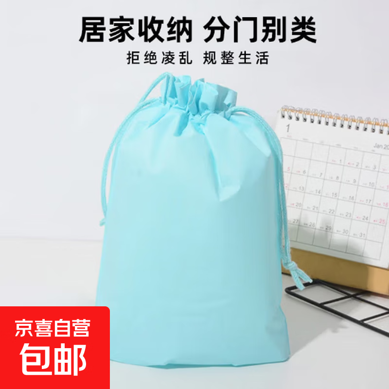 旅行衣服收纳袋出差衣物内衣内裤分装袋旅游行李箱便携压缩整理包 磨砂抽绳收纳袋-天蓝色磨砂袋-1个