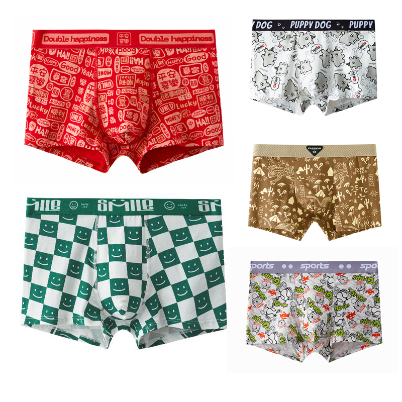 男士内裤青少年潮牌卡通纯棉抗菌透气性无痕平角裤头可爱薄款底裤