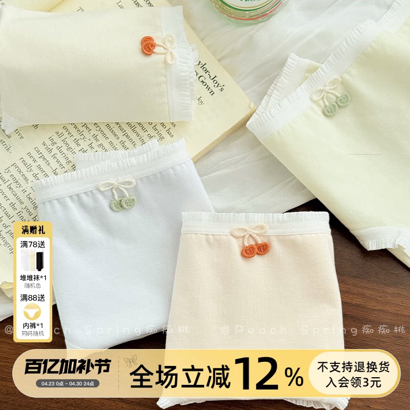 绵绵牛乳~纯棉18cm加长裆内裤女生10A类抗菌透气无痕中腰三角短裤