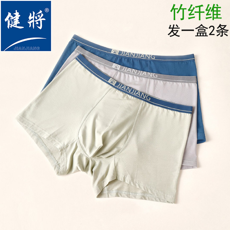健将盒装2条男士内裤无痕中腰抗菌裆透气竹纤维式平角短裤头底裤