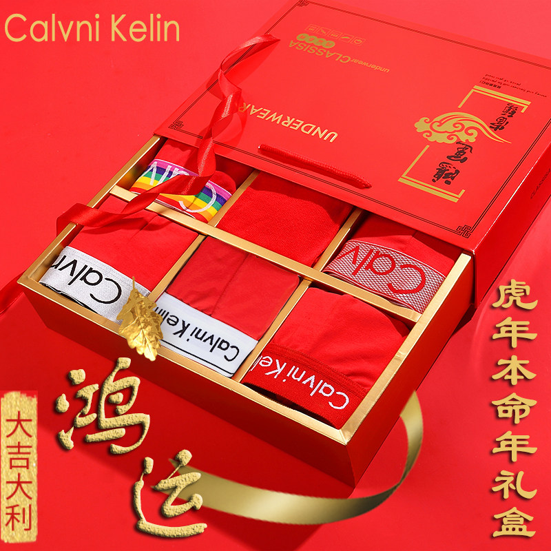 2026属马本命年大红色男士内裤纯棉四角平角裤结婚鸿运礼盒装
