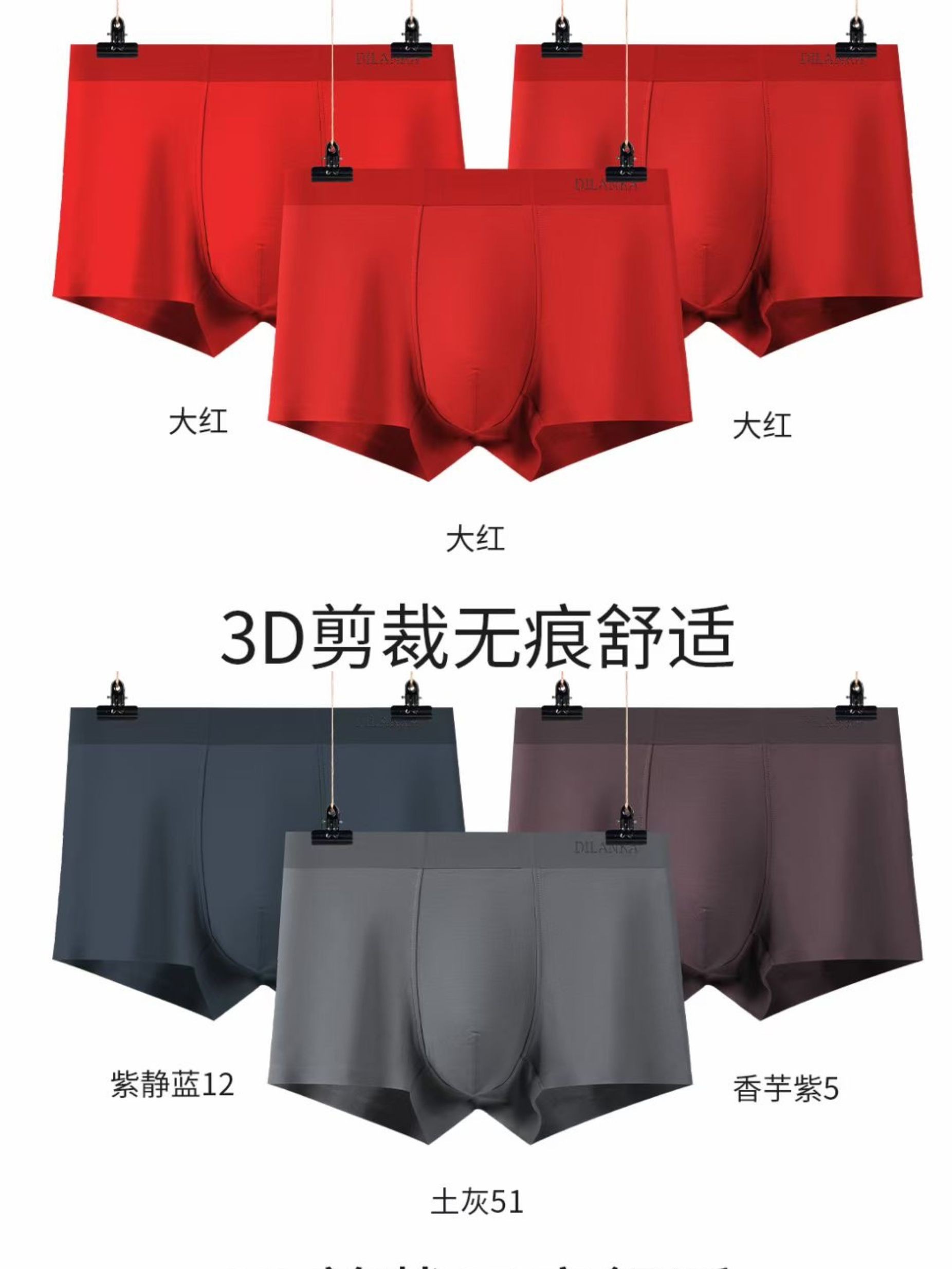 狄兰卡男士内裤3条 薄款莫代尔新款四角无痕加大短裤透气抗菌平角