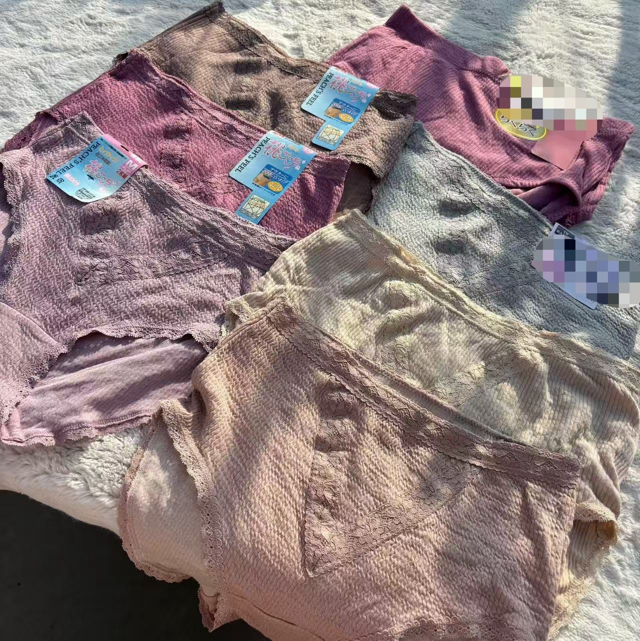 牛货!外贸日单100%纯棉全棉三角裤头中高腰大码女内裤日系蕾丝边