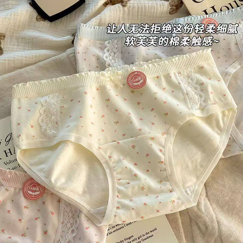 内裤女纯棉7a抗菌学生少女日系中腰100%全棉抑菌透气ins甜美3角裤