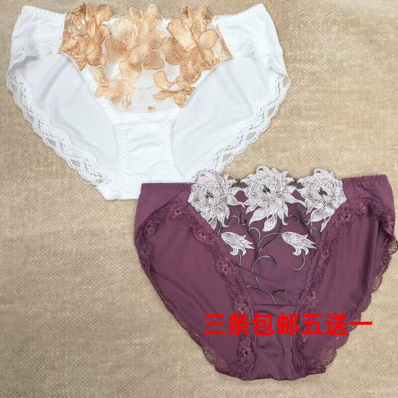 奢华高货新款出口日本外贸原单女士丝滑牛奶丝面料刺绣中腰内裤