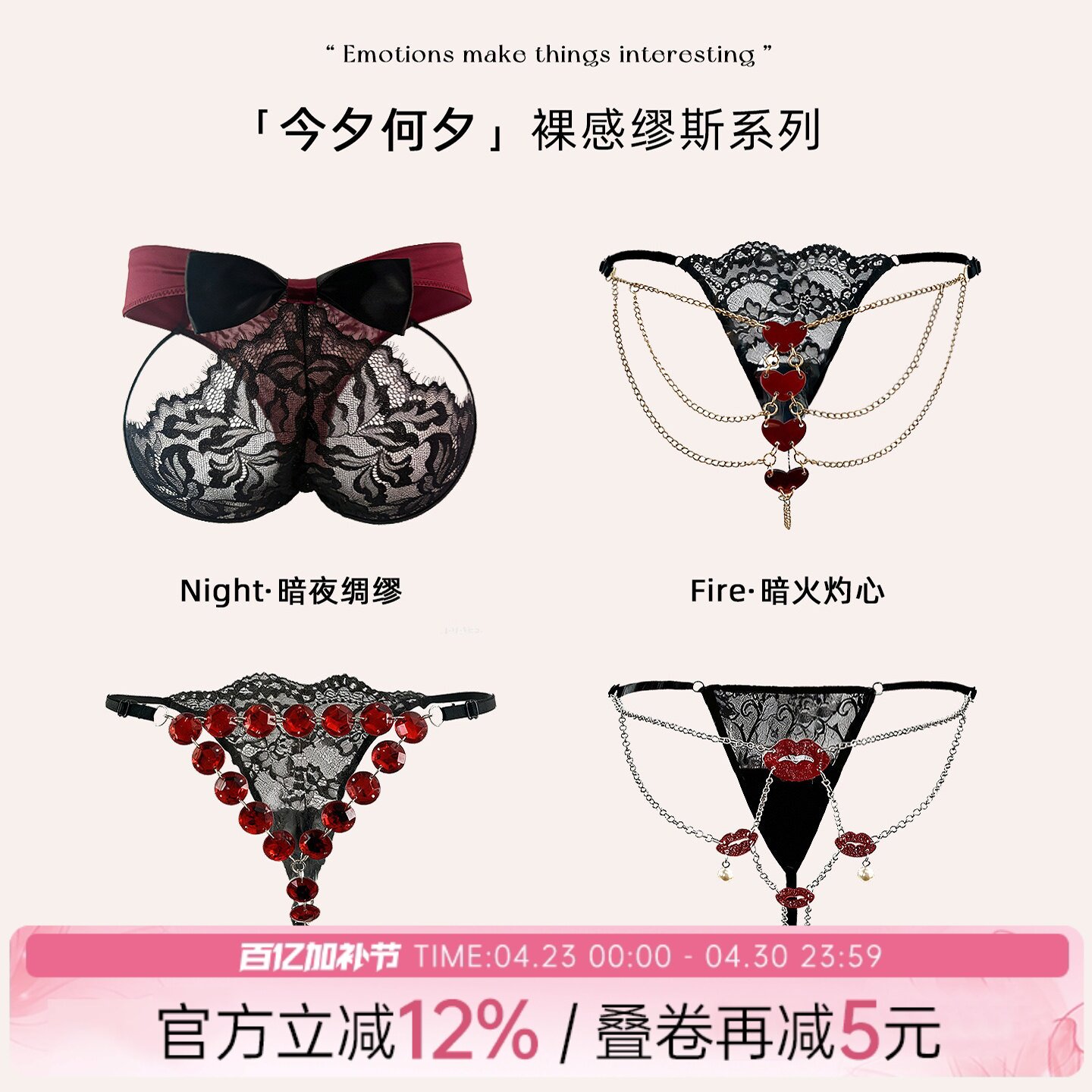「今夕何夕」*裸感缪斯系列 新年美腰细带性感勾人内裤女限定套盒