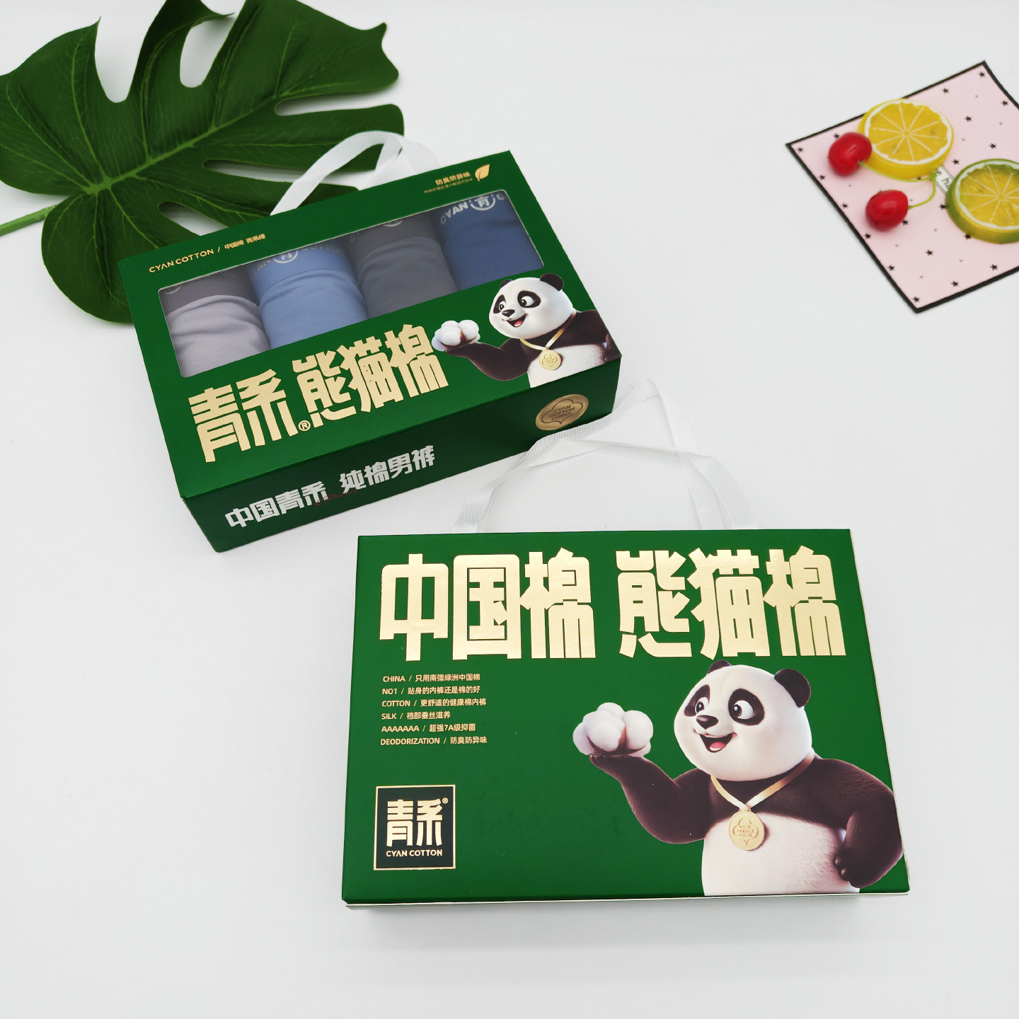 4条装青系熊猫棉内裤男士长绒棉内裤纯棉内裤平角裤桑蚕丝抗菌裆