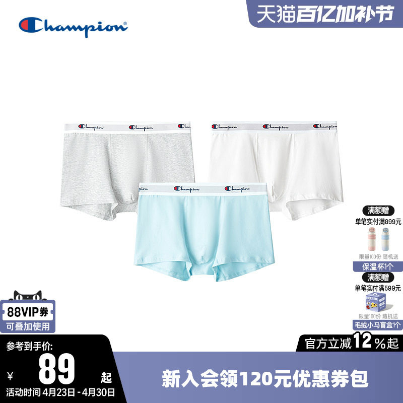 Champion冠军男士内裤2026新款潮牌舒适四角裤平角裤短裤三条装