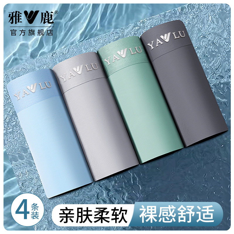 雅鹿男士内裤撞色无痕抗菌平角裤春夏青少年运动透气2026新款印花