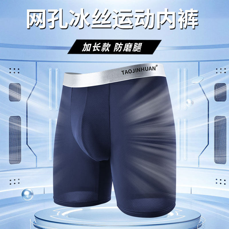 男士冰丝网孔加长运动内裤防磨腿透气高腰男士纯棉内裤裤