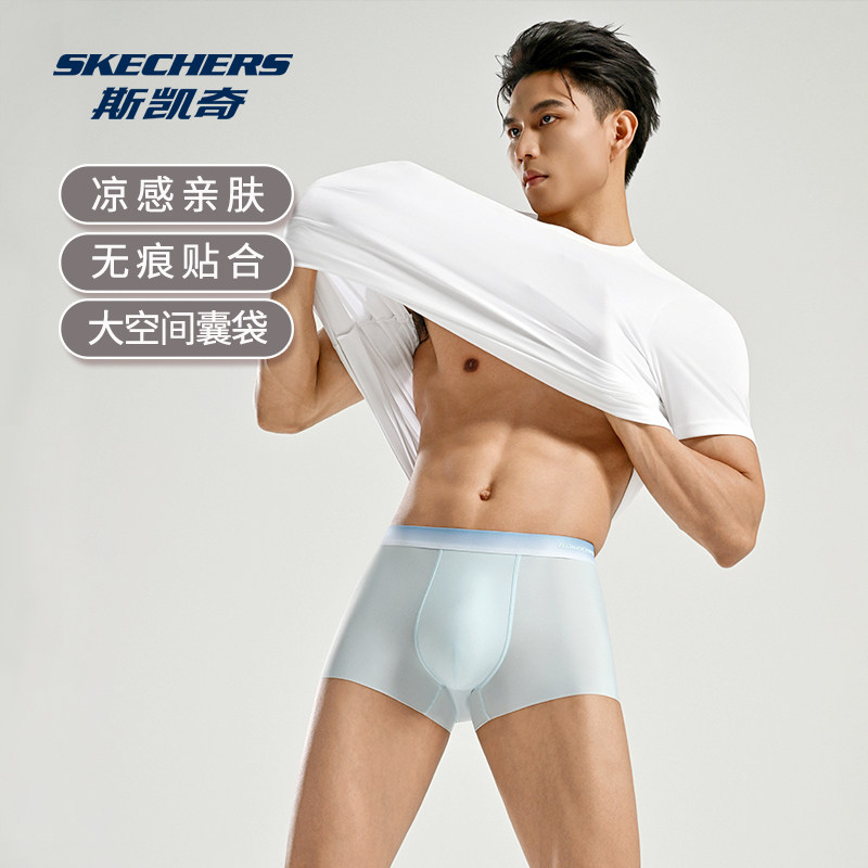 斯凯奇男士夏薄款内裤冰丝无痕透气抗菌平角裤男款运动宽松四角裤