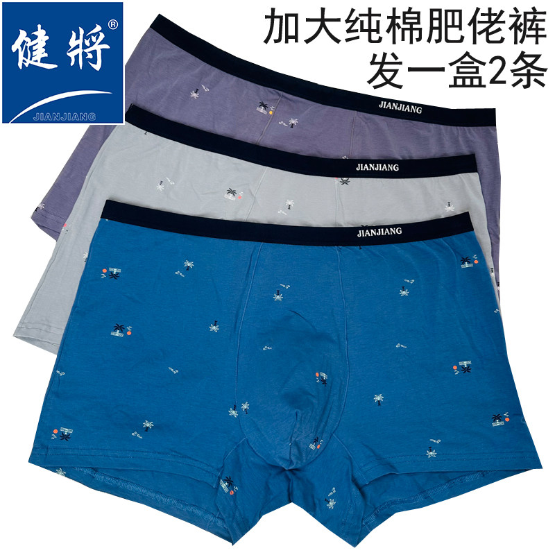 健将正品100%全棉男士中腰四角裤男生纯棉内裤男式平角裤宽松大码