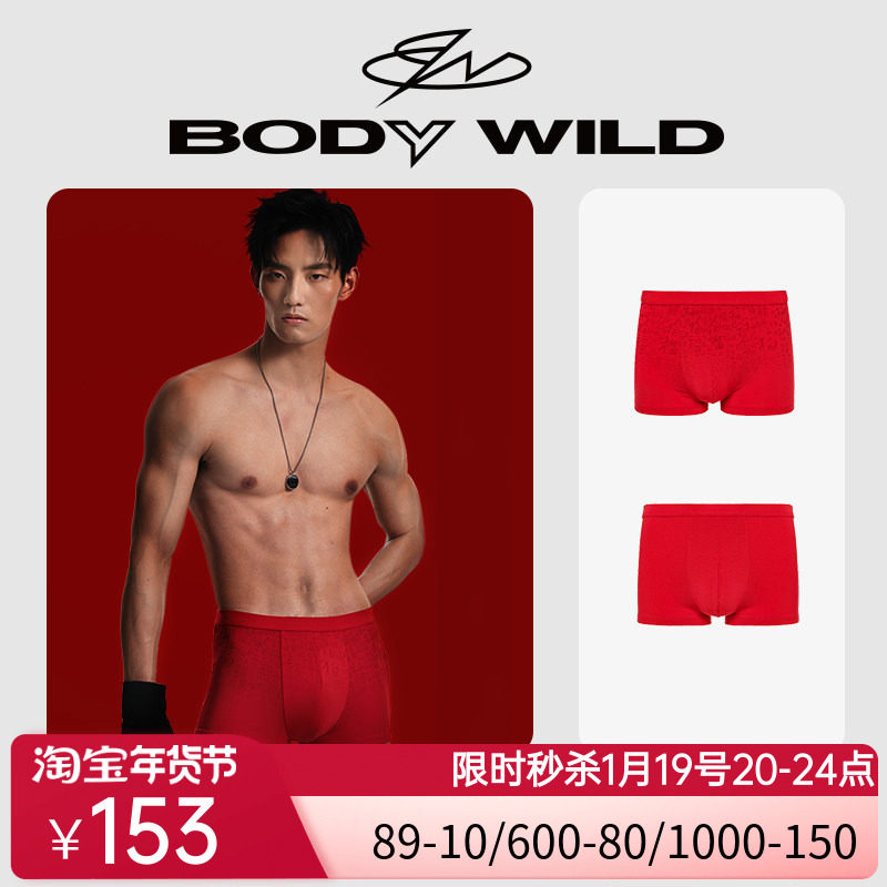 【抑菌红品内裤2条装】BODY WILD福字印花本命年平角裤男ZBN23GP5