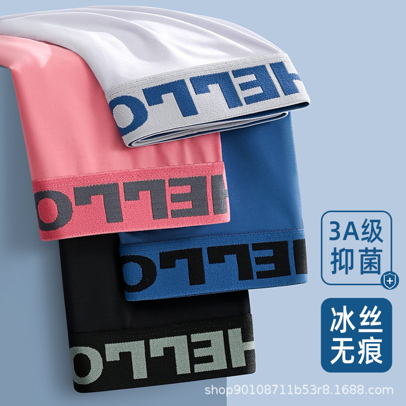 2025新款男士内裤夏季冰丝一片式HELLO纯色内裤青少年男平角裤潮