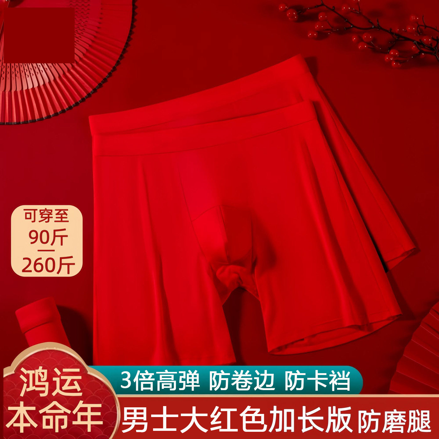 本命年男士内裤加长大码运动短裤头男生红色底裤衩防磨腿高弹透气