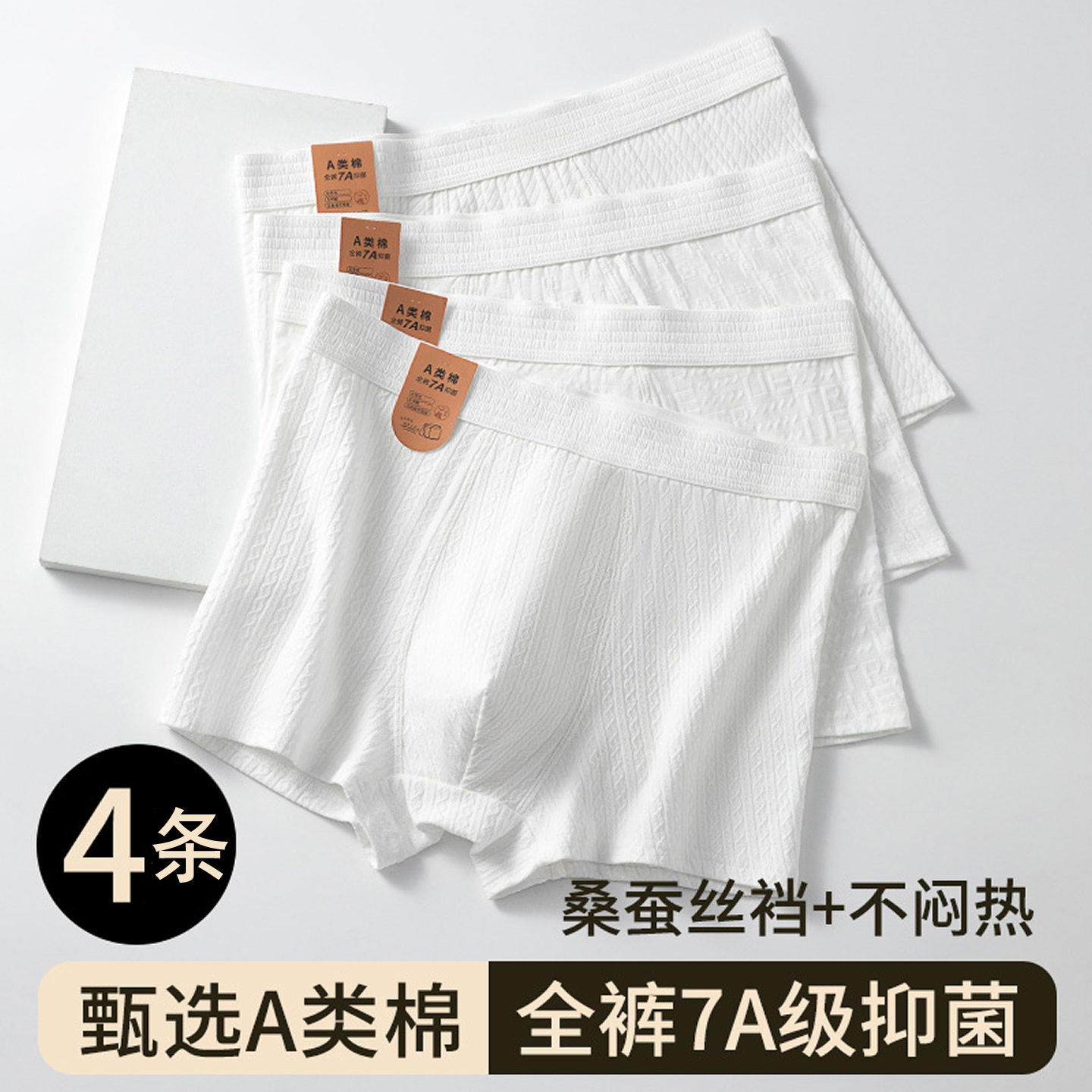 男士纯白色内裤纯棉质a类抗菌平角底裤头男式款透气无染色短裤衩