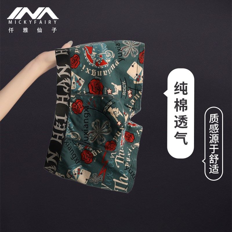 95棉透气个性男士内裤平角裤青年四角裤性感短裤衩印花时尚大裤衩