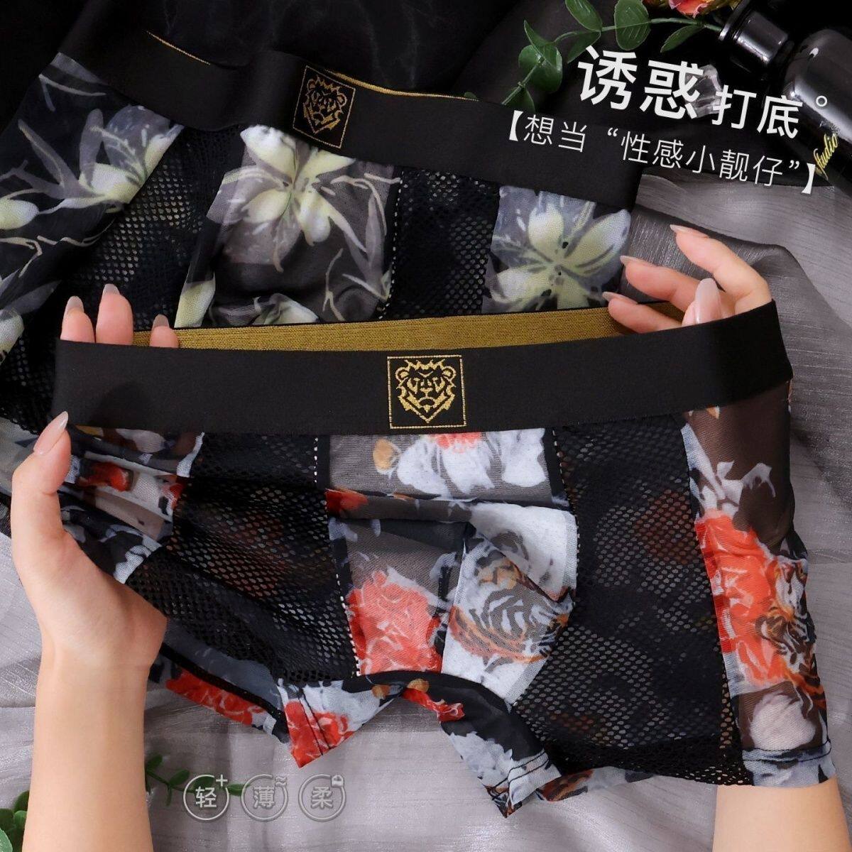 师凯服饰山茶花香氛男士冰丝内裤柔软舒适透气夏轻薄透明平角裤