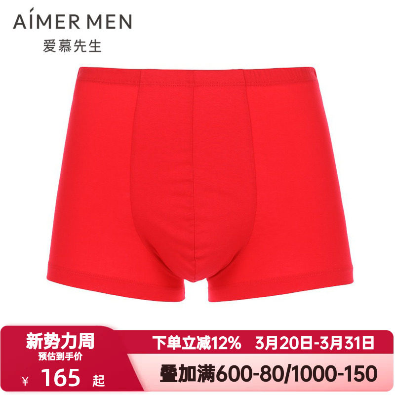 爱慕先生内裤男士红色本命年丝光棉光滑柔软包腰中腰平角裤23P92