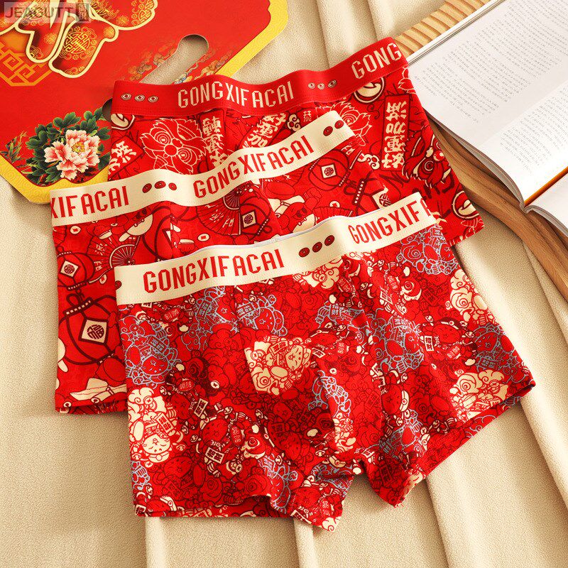 本命年男士内裤男酒红o纯棉透气平角裤男生新年礼物结婚喜庆四角