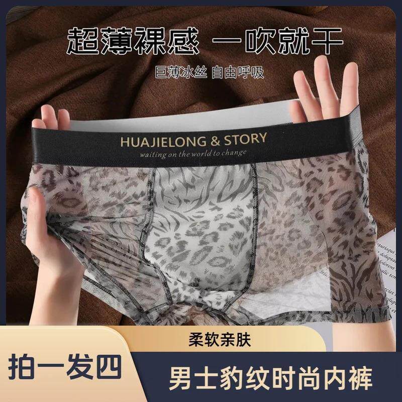 桑瑜拍一发四男士透明内裤冰丝男款四角裤头男隐形透气超薄款