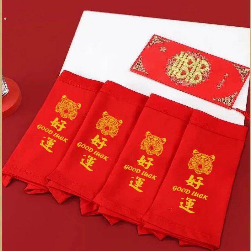 本命年男士内裤大红色男生四角短裤结婚大码平角裤4条