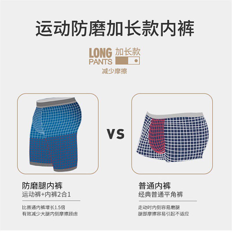 男士运动防磨腿加长o款内裤平角透气跑步长版加大码四角裤BL-2