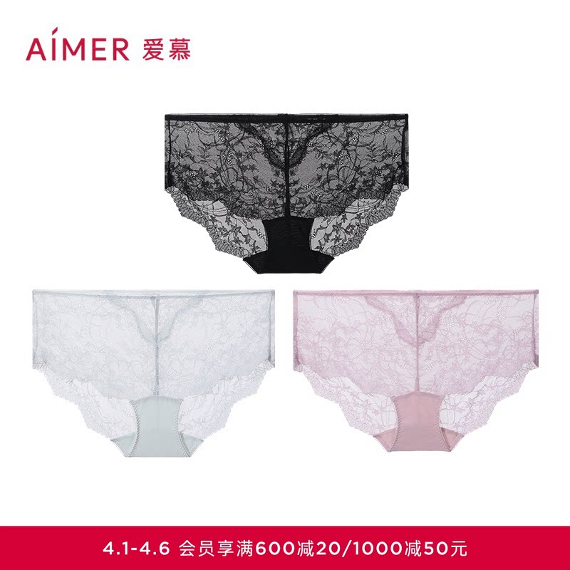 【3件包】爱慕内裤女花的藤蔓棉质底裆性感蕾丝中腰平角裤