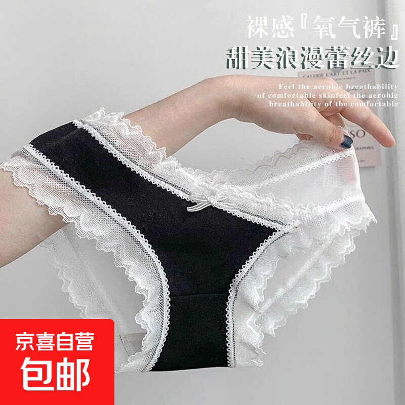 少女蕾丝内裤女7A抗菌全棉裆超薄舒适透气中腰性感 提花蕾丝1条装【随机颜色】 L (95-115斤)