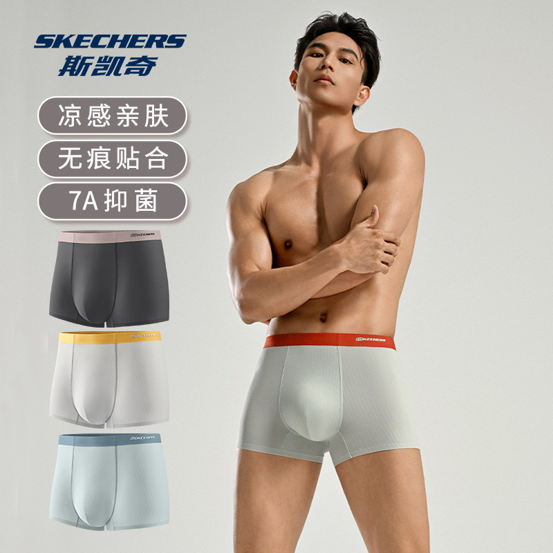 斯凯奇男款内裤夏薄款冰丝男士四角裤抗菌无痕高端宽松运动平角裤