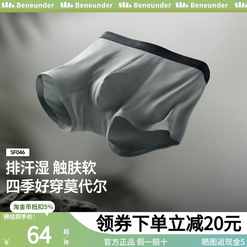 蕉下男士莫代尔内裤裸感透气不卡裆运动抗菌平角裤防夹臀四角裤
