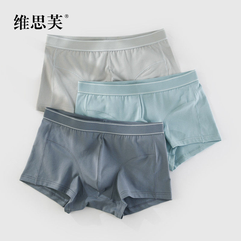 3条全棉男士平角内裤新疆棉无痕短裤纯棉印花蚕丝抗菌透气四角裤