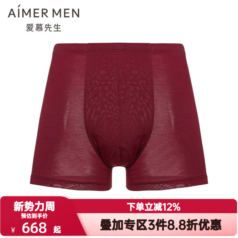 爱慕先生高端针织真桑蚕丝内裤男士酒红色柔滑舒适平角裤NS23J031