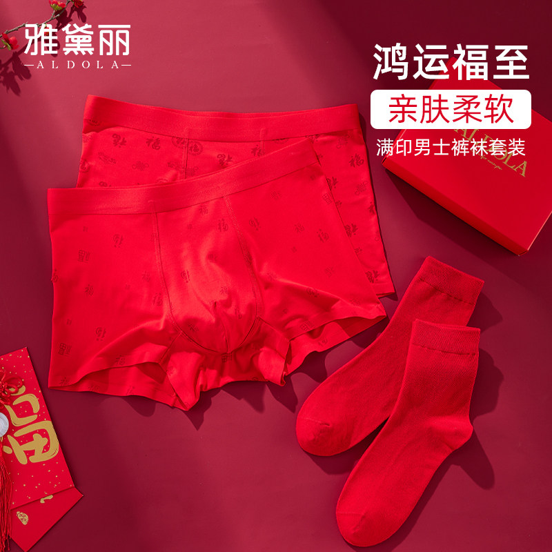 雅黛丽男士红品内裤套装本命年结婚大红内裤袜子套装舒适高弹不勒