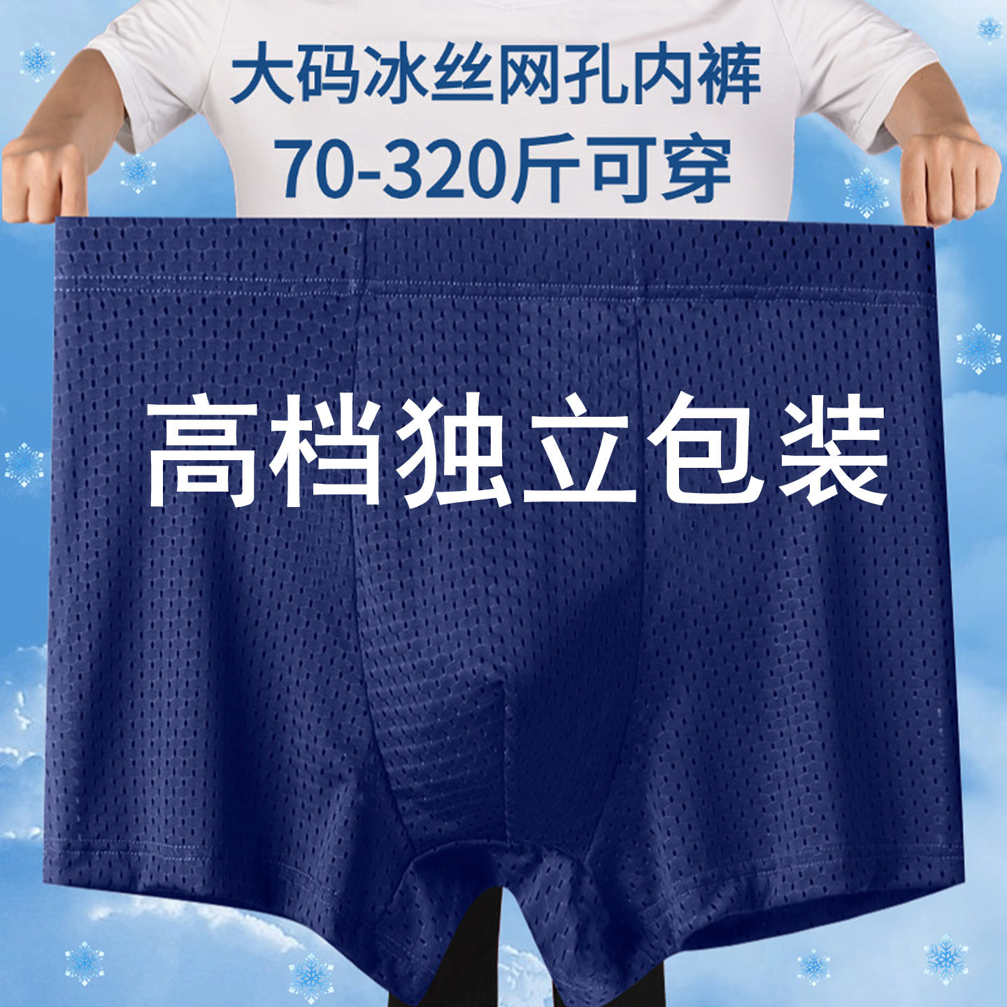 男式内裤冰丝透气网眼加肥加大码男士四角裤头高腰宽松平角短裤衩