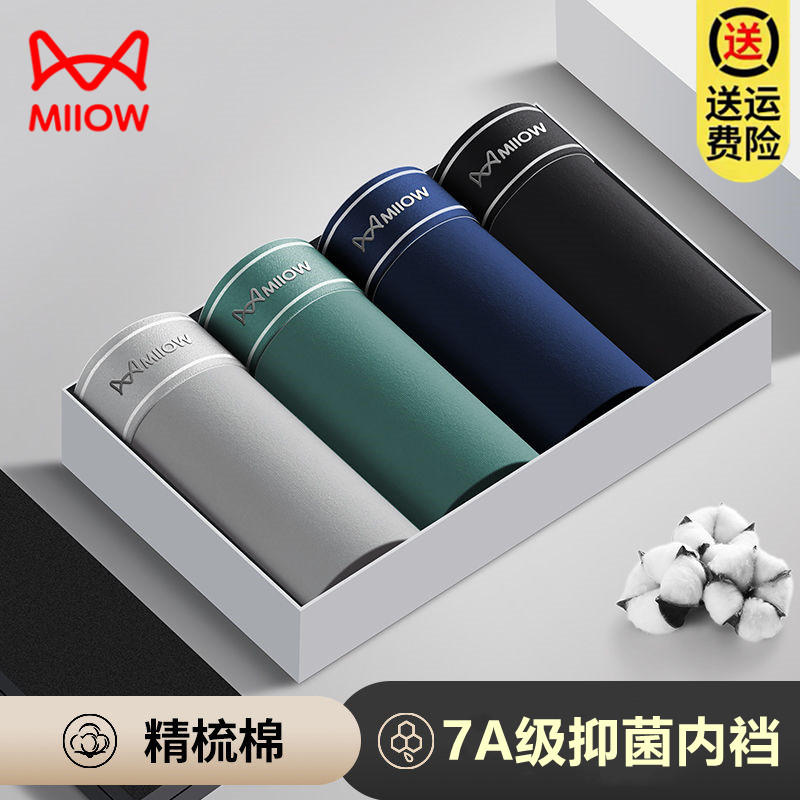 猫人男士内裤精梳纯棉石墨烯抗菌透气平角男四季款运动四角短裤头